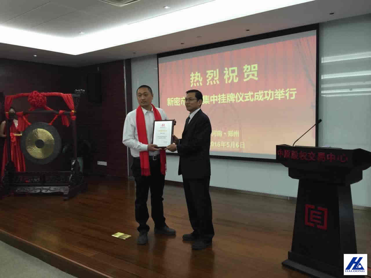 2016年5月6日上午,新密市36家企業集中在中原股權交易中心路演廳舉行掛牌儀式,據了解,這是中原股權交易中心成立以來,批次掛牌數量最多的一次,而新密市也是掛牌企業數量較多的縣市之一。